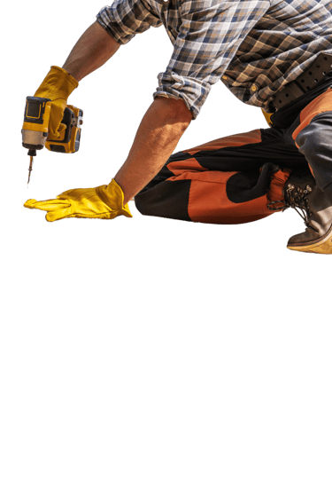 a person wearing blue gloves and holding a hammer
